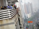 女子高楼轻生被救 围观者堵救护